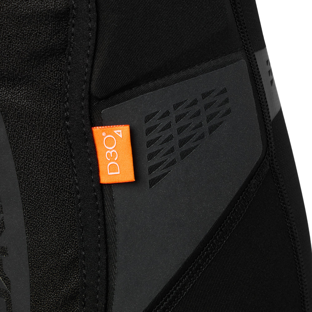 - D3O® CE certified foam stiffens on impact to absorb energy and reduce force in the event of a crash, but is still flexible and breathable
